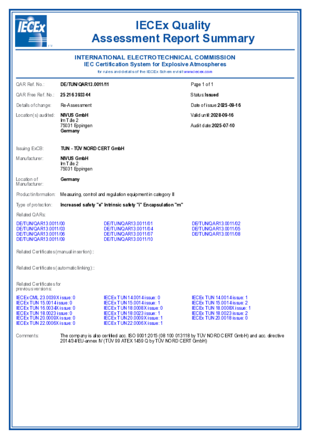 Certification according to ISO 9001 since 1995, ATEX certification since 1999 as well as our long-time customer relations all over the world show that we put this understanding of quality into practice on a daily basis.