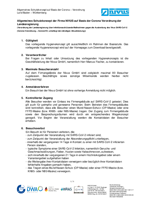 Hygienekonzept für Veranstaltungen bei NIVUS