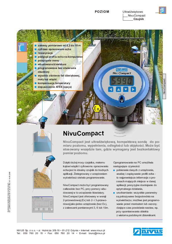 Ultradźwiękowy czujnik poziomu z możliwością podłaczenia 2-przewodowego lub 3-przewodowego
