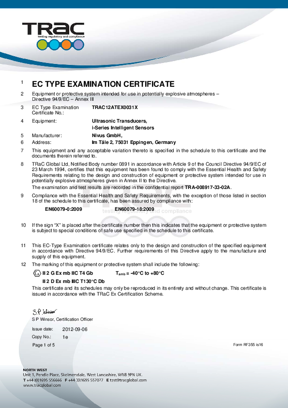 EC type examination certificate pressure transmitter