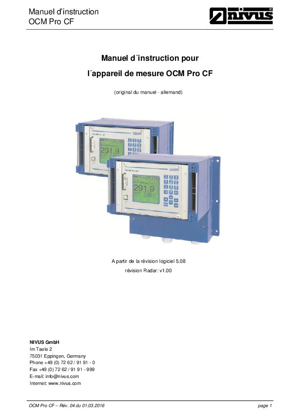 Manuel d´instruction pour OCM Pro CF (R4) avec le Radar