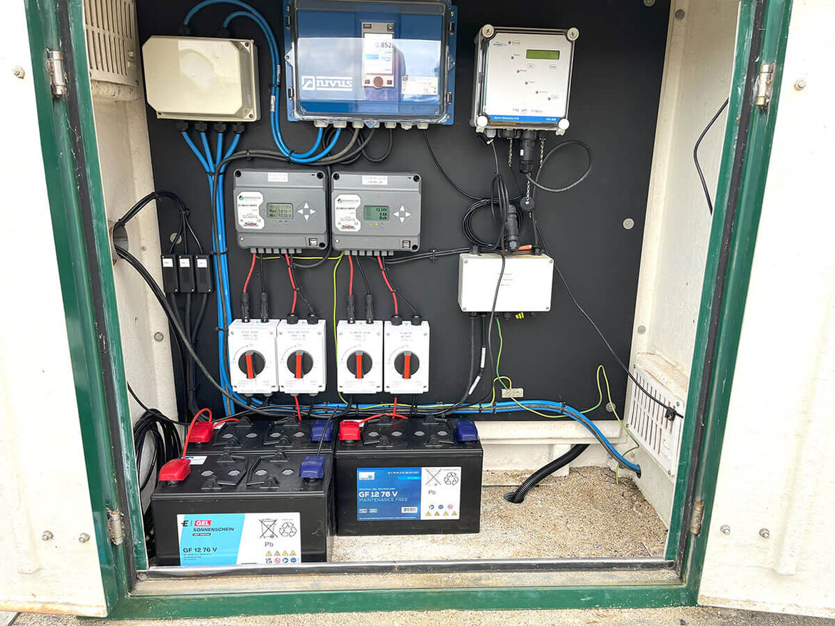 The EA’s standard remote communication equipment was installed inside a kiosk along with the transmitter, a multiplexer, rechargeable batteries and a solar power regulator.