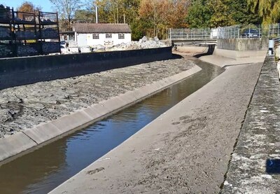 - Two wedge sensors installed on the bottom of each of the dry weather flumes, as well as the left and right berm, reliably detect the heavily distorted velocity distribution within the special profile.
