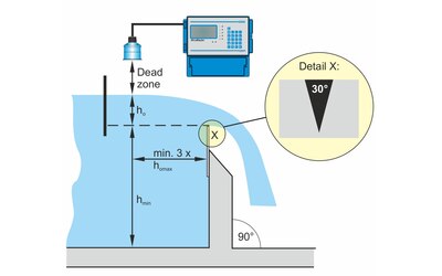 - Se utiliza el sistema de medición ultrasónico sin contacto tipo NivuMaster para detectar la altura de rebose.
