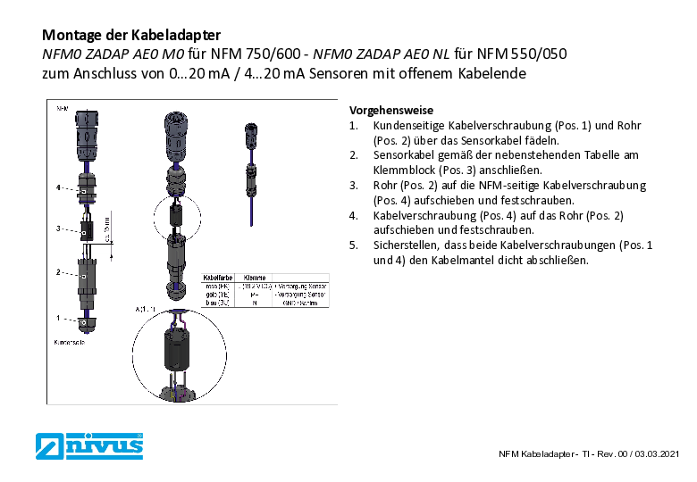 Montage Kabeladapter für NFM 750, NFM 600, NFM 550; NFM 050
