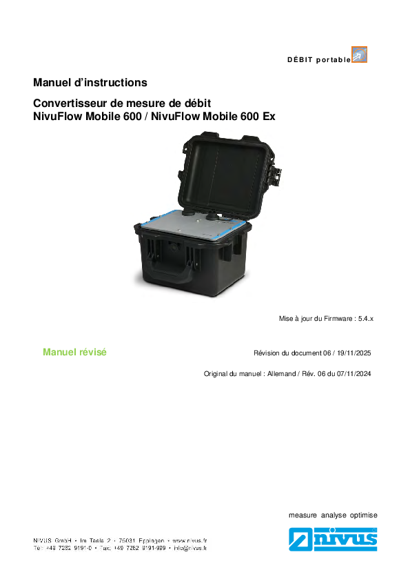 Manuel d’instructions | Convertisseur de mesure de débit NivuFlow Mobile 600 / NivuFlow Mobile 600 Ex (Rev. 06)