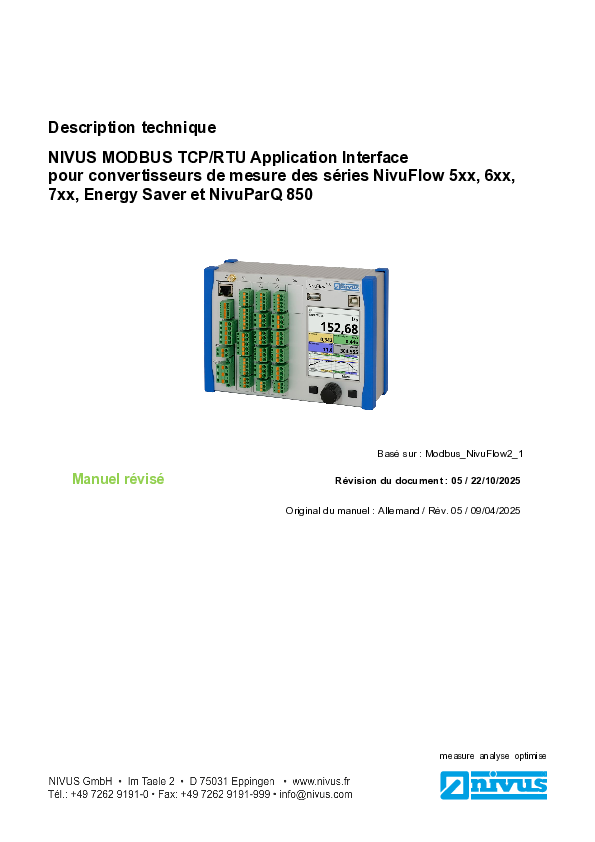 - Couplage Modbus de tous les transmetteurs NivuFlow