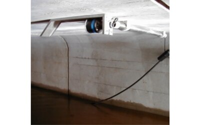 - Dzięki zastosowaniu specjalnego reflektora kątowego czujnik ultradźwiękowy można zamontować w maksymalnej odległości od powierzchni ścieku/wody