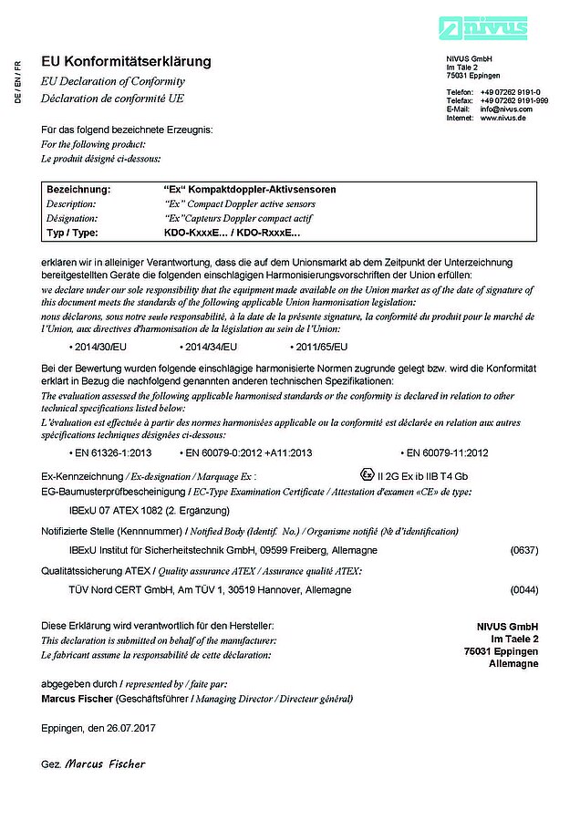 Technical Instruction for KDA Doppler sensors (pipe and wedge style)